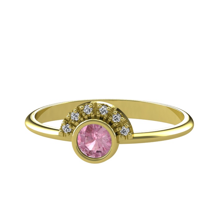 Pembe kuvars ve beyaz zirkon 18 ayar altın yüzük