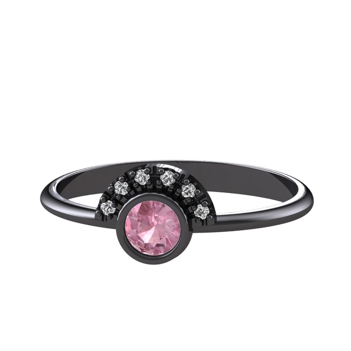 Pembe kuvars ve beyaz zirkon 925 ayar siyah rodyum kaplama gümüş yüzük