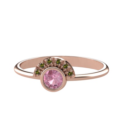 Pembe kuvars ve peridot 18 ayar rose altın yüzük