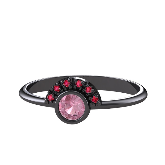 Pembe kuvars ve rodolit garnet 925 ayar siyah rodyum kaplama gümüş yüzük