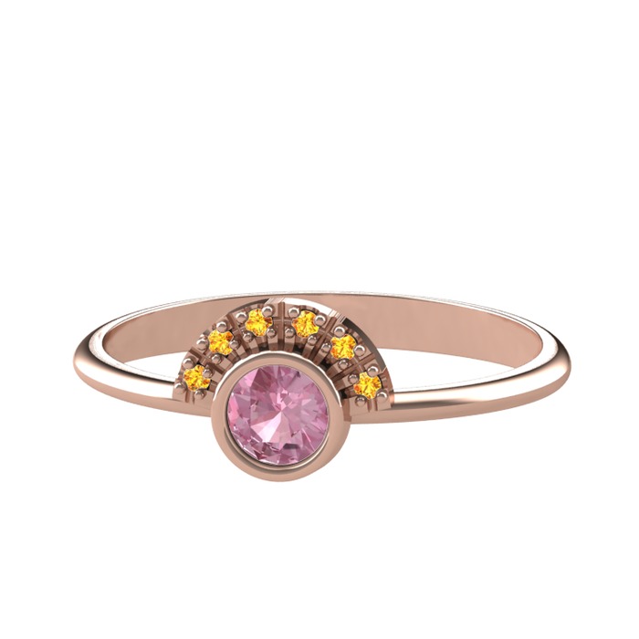 Pembe kuvars ve sitrin 925 ayar rose altın kaplama gümüş yüzük