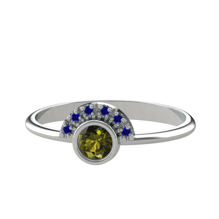 Peridot ve lab safir 8 ayar beyaz altın yüzük