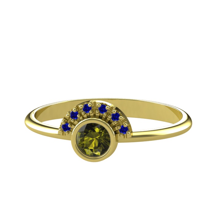 Peridot ve lab safir 925 ayar altın kaplama gümüş yüzük