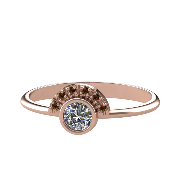 Pırlanta ve dumanlı kuvars 14 ayar rose altın yüzük (0.18 karat)