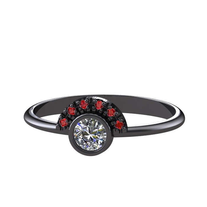 Pırlanta ve garnet 925 ayar siyah rodyum kaplama gümüş yüzük (0.18 karat)