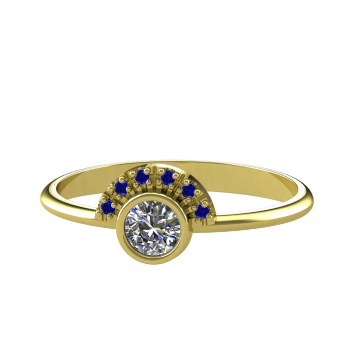 Pırlanta ve lab safir 14 ayar altın yüzük (0.18 karat)