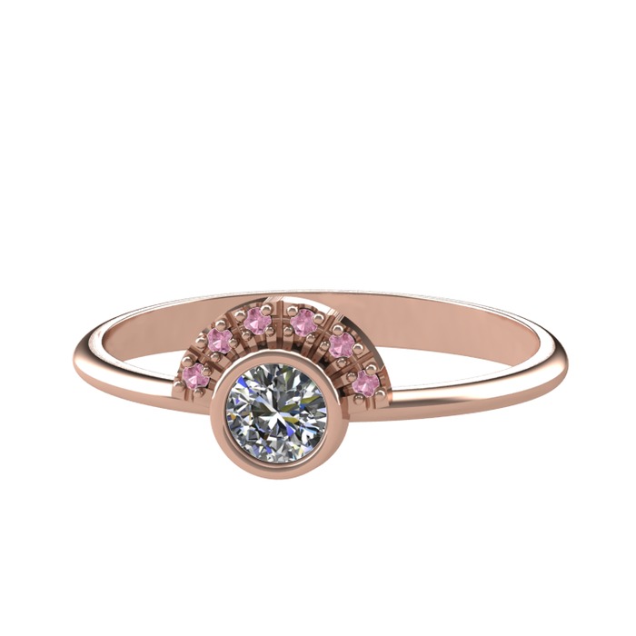 Pırlanta ve pembe kuvars 8 ayar rose altın yüzük (0.18 karat)