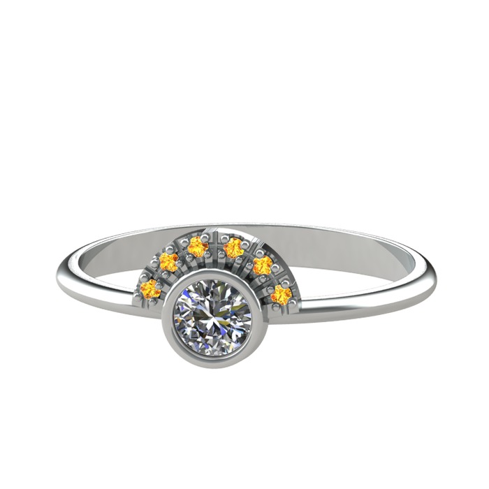 Pırlanta ve sitrin 8 ayar beyaz altın yüzük (0.18 karat)