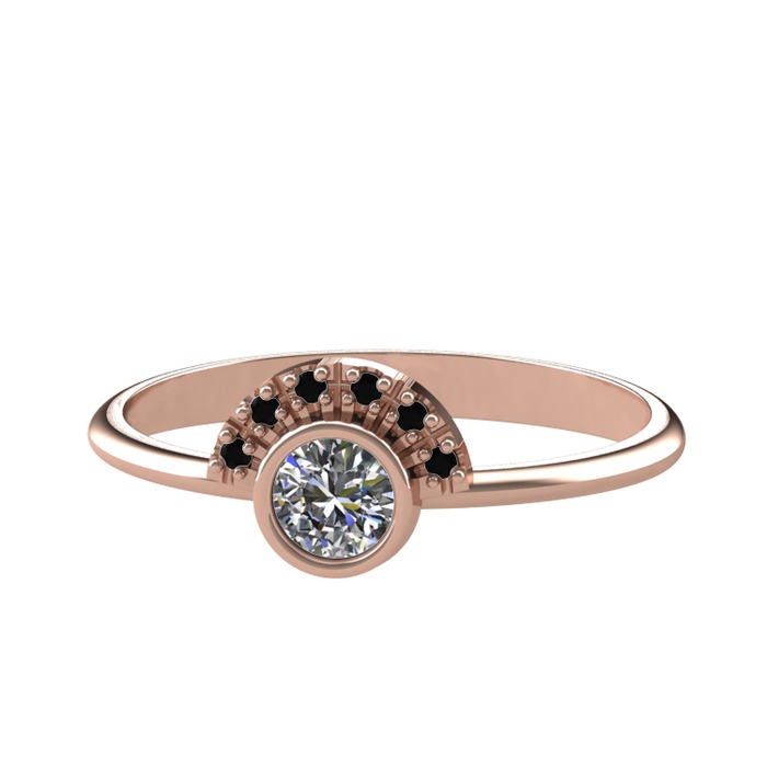 Pırlanta ve siyah zirkon 18 ayar rose altın yüzük (0.18 karat)