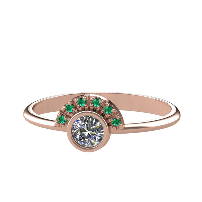 Pırlanta ve yeşil kuvars 14 ayar rose altın yüzük (0.18 karat)
