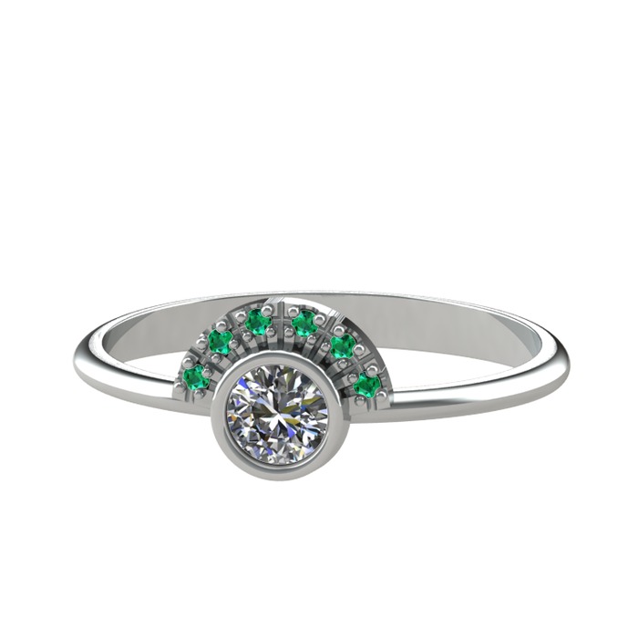 Pırlanta ve yeşil kuvars 8 ayar beyaz altın yüzük (0.18 karat)