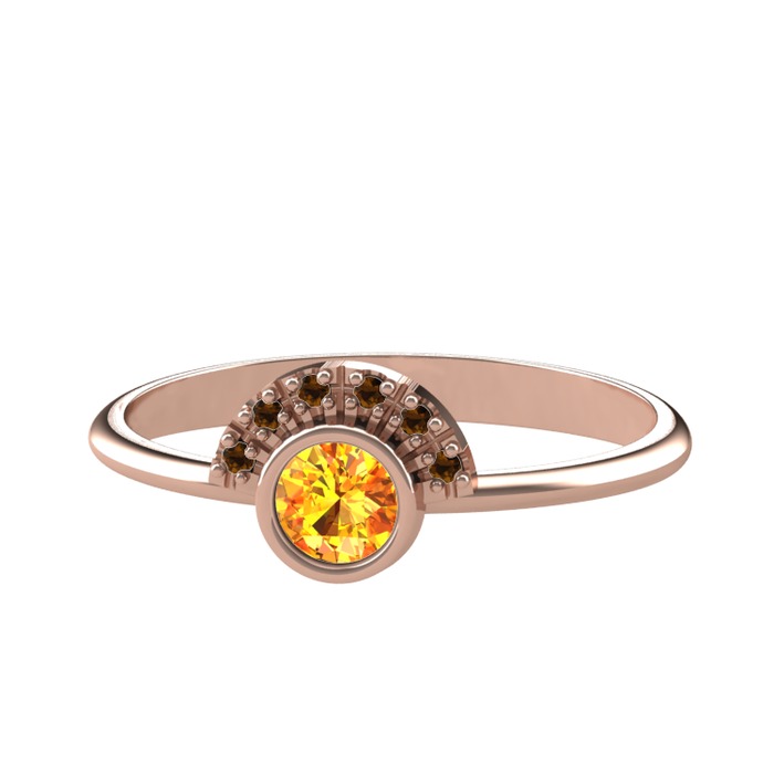 Sitrin ve dumanlı kuvars 14 ayar rose altın yüzük