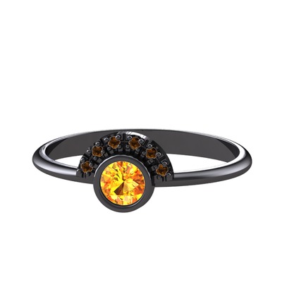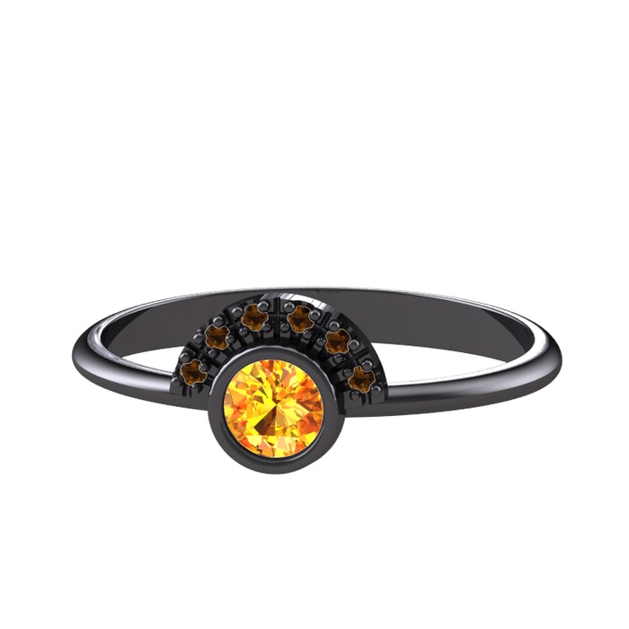 Sitrin ve dumanlı kuvars 925 ayar siyah rodyum kaplama gümüş yüzük
