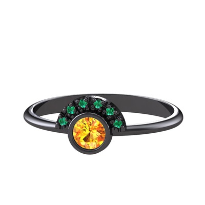 Sitrin ve yeşil kuvars 925 ayar siyah rodyum kaplama gümüş yüzük