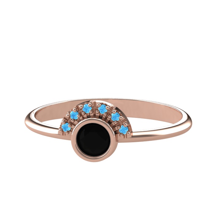 Siyah zirkon ve akuamarin 18 ayar rose altın yüzük