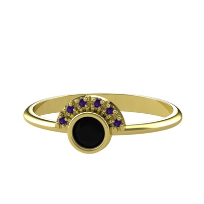 Siyah zirkon ve ametist 14 ayar altın yüzük