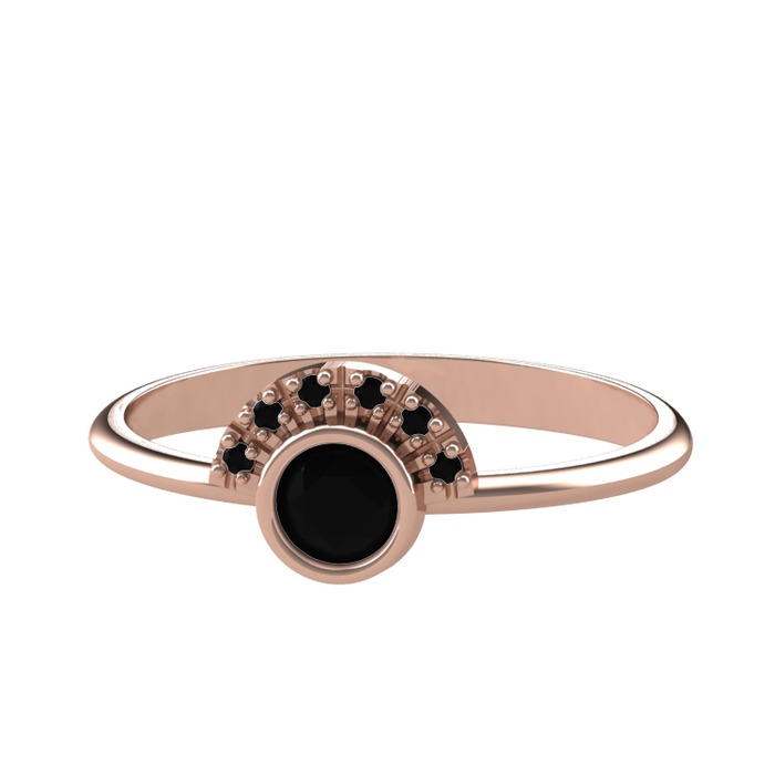 Siyah zirkon 925 ayar rose altın kaplama gümüş yüzük