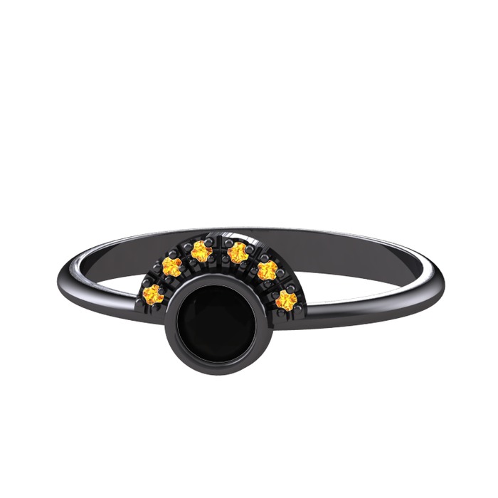 Siyah zirkon ve sitrin 925 ayar siyah rodyum kaplama gümüş yüzük
