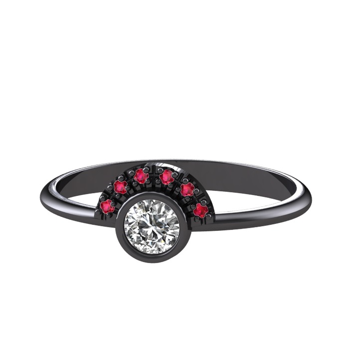 Swarovski ve rodolit garnet 925 ayar siyah rodyum kaplama gümüş yüzük