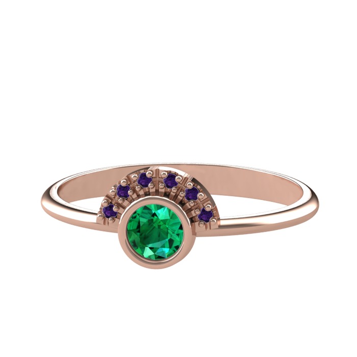 Yeşil kuvars ve ametist 925 ayar rose altın kaplama gümüş yüzük