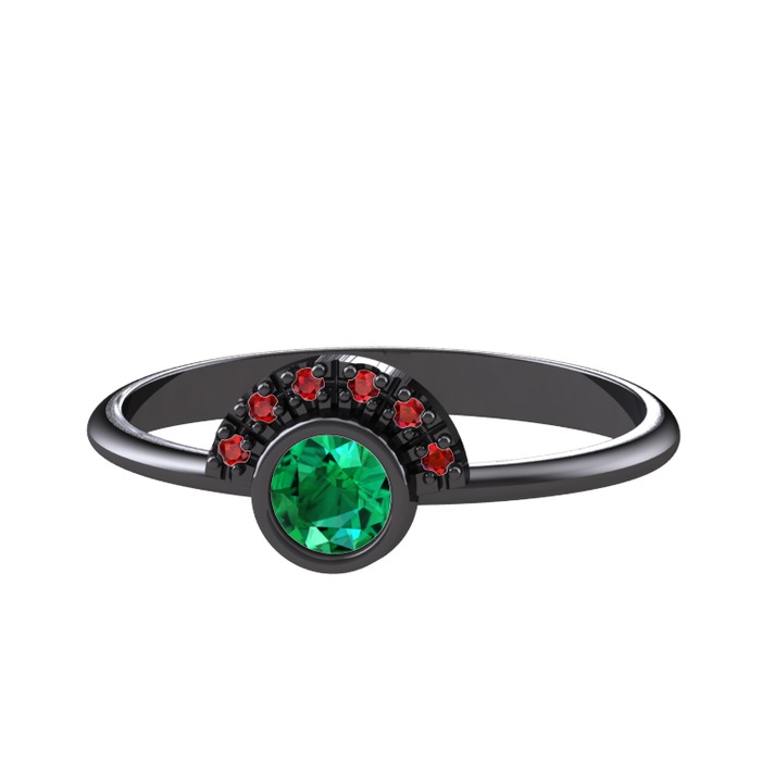 Yeşil kuvars ve garnet 925 ayar siyah rodyum kaplama gümüş yüzük