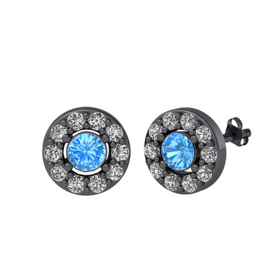 Akuamarin ve beyaz zirkon 925 ayar siyah rodyum kaplama gümüş küpe
