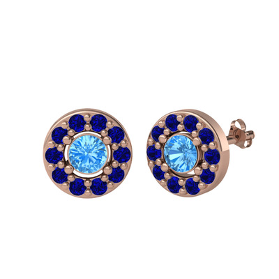 Akuamarin ve lab safir 14 ayar rose altın küpe