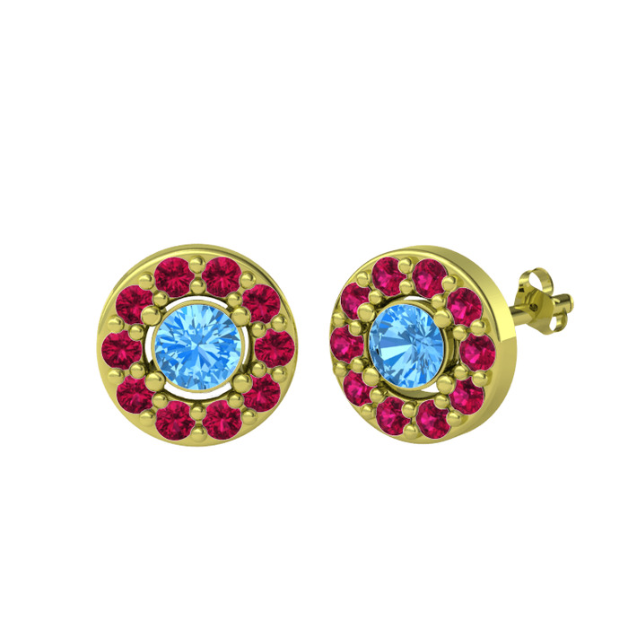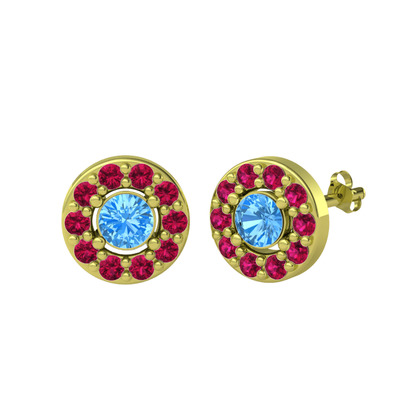 Akuamarin ve rodolit garnet 14 ayar altın küpe
