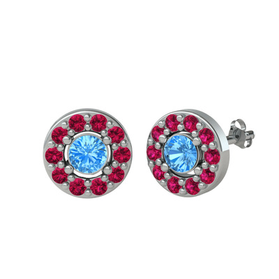 Akuamarin ve rodolit garnet 8 ayar beyaz altın küpe