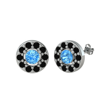 Akuamarin ve siyah zirkon 14 ayar beyaz altın küpe