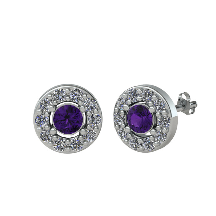 Ametist ve pırlanta 14 ayar beyaz altın küpe (0.72 karat)