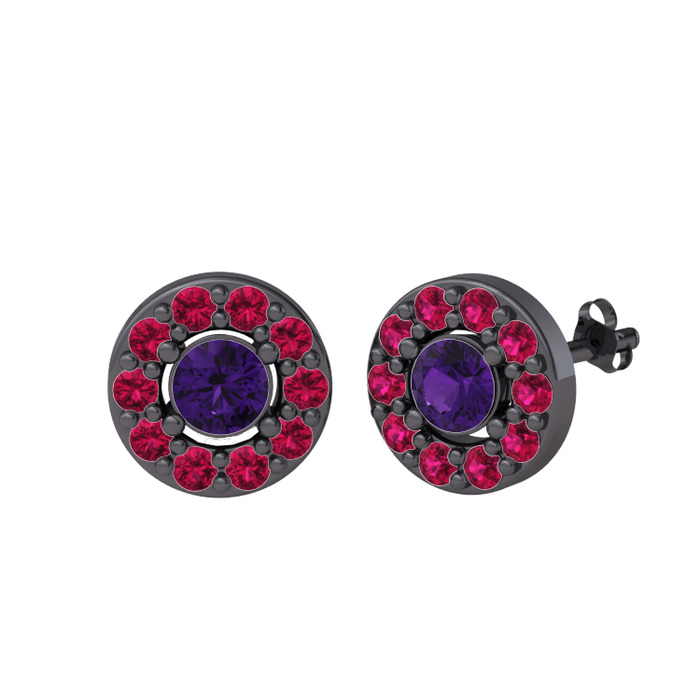 Ametist ve rodolit garnet 925 ayar siyah rodyum kaplama gümüş küpe