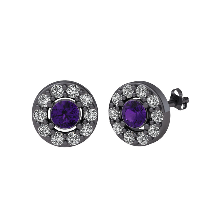 Ametist ve swarovski 925 ayar siyah rodyum kaplama gümüş küpe