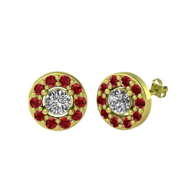 Beyaz zirkon ve garnet 925 ayar altın kaplama gümüş küpe