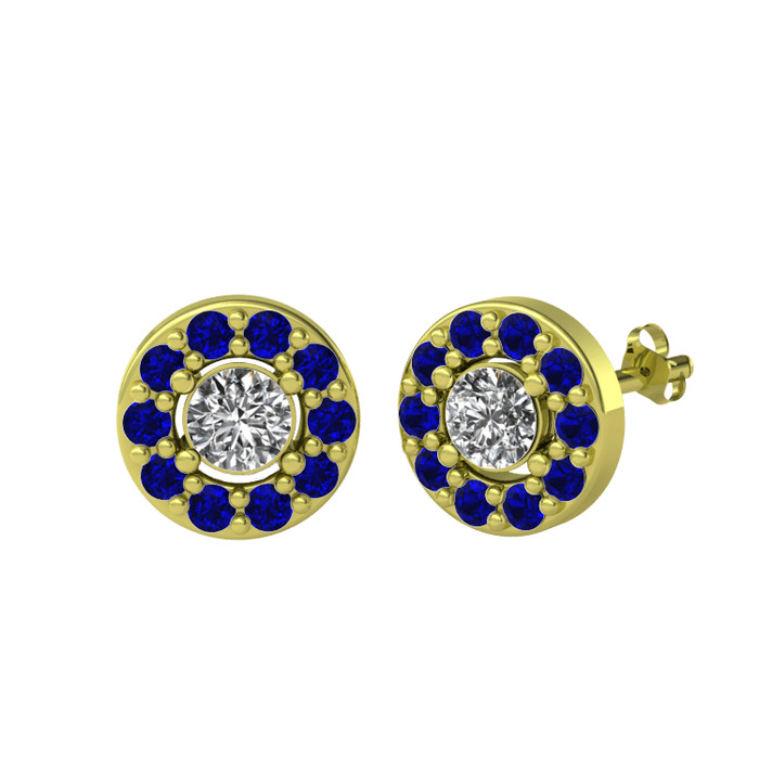Beyaz zirkon ve lab safir 18 ayar altın küpe
