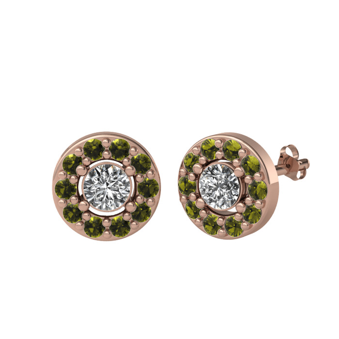Beyaz zirkon ve peridot 18 ayar rose altın küpe