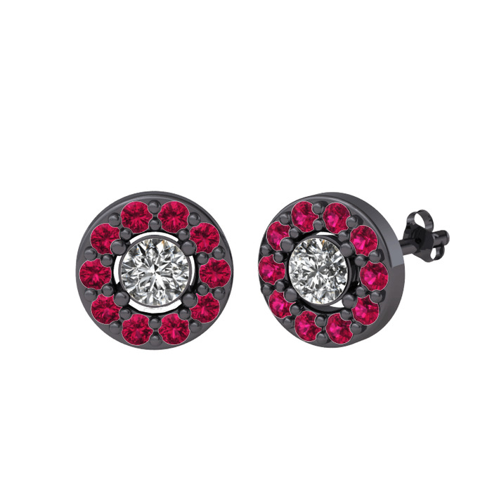 Beyaz zirkon ve rodolit garnet 925 ayar siyah rodyum kaplama gümüş küpe