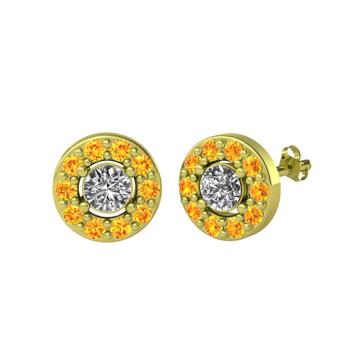 Beyaz zirkon ve sitrin 18 ayar altın küpe