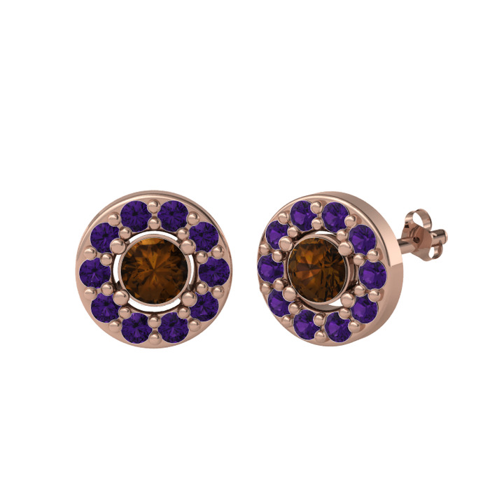 Dumanlı kuvars ve ametist 925 ayar rose altın kaplama gümüş küpe