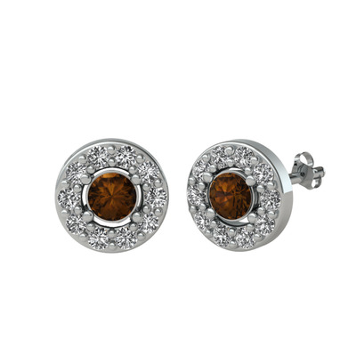 Dumanlı kuvars ve beyaz zirkon 14 ayar beyaz altın küpe
