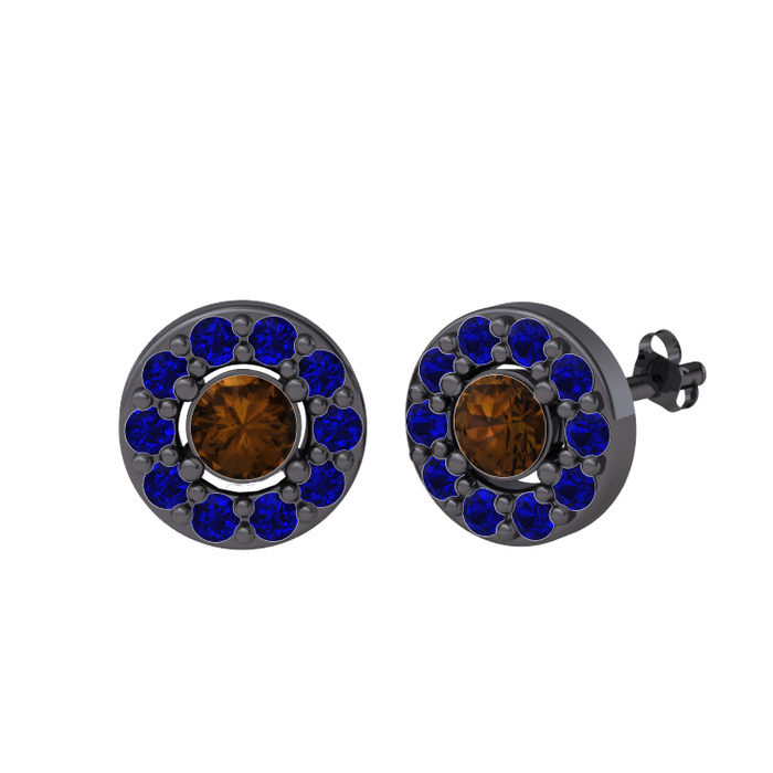 Dumanlı kuvars ve lab safir 925 ayar siyah rodyum kaplama gümüş küpe