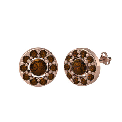 Dumanlı kuvars 925 ayar rose altın kaplama gümüş küpe