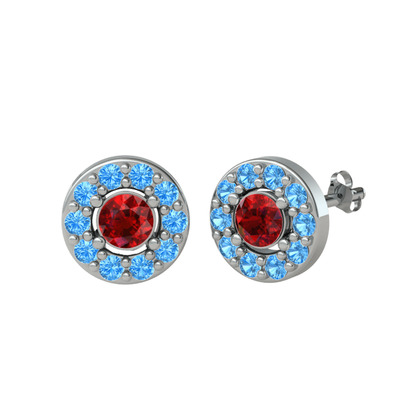 Garnet ve akuamarin 925 ayar gümüş küpe