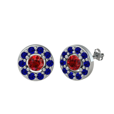 Garnet ve lab safir 8 ayar beyaz altın küpe