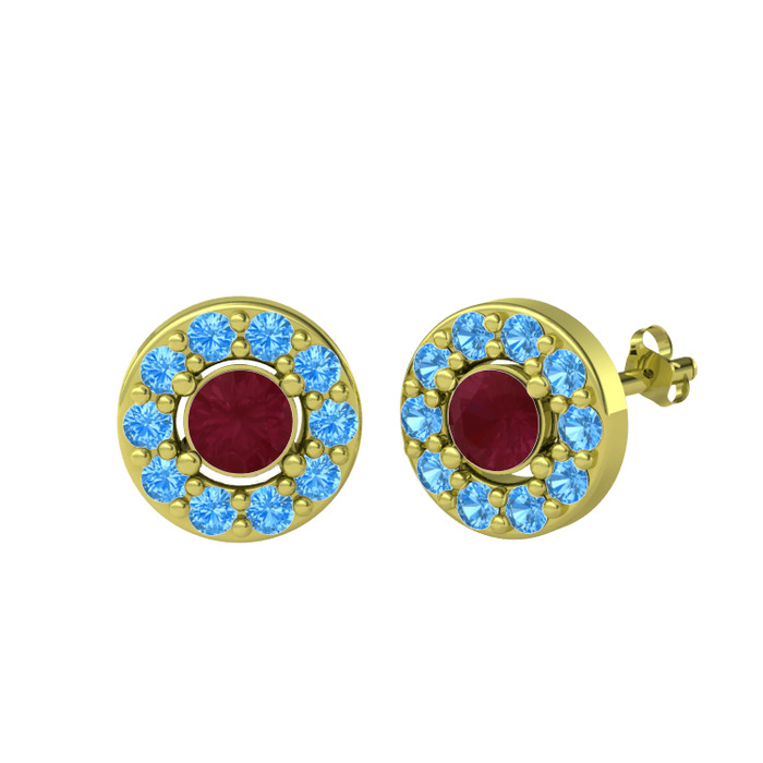 Kök yakut ve akuamarin 14 ayar altın küpe