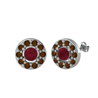 Kök yakut ve dumanlı kuvars 14 ayar beyaz altın küpe