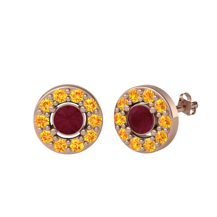 Kök yakut ve sitrin 8 ayar rose altın küpe