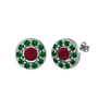 Kök yakut ve yeşil kuvars 8 ayar beyaz altın küpe