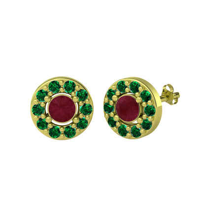 Kök yakut ve yeşil kuvars 925 ayar altın kaplama gümüş küpe