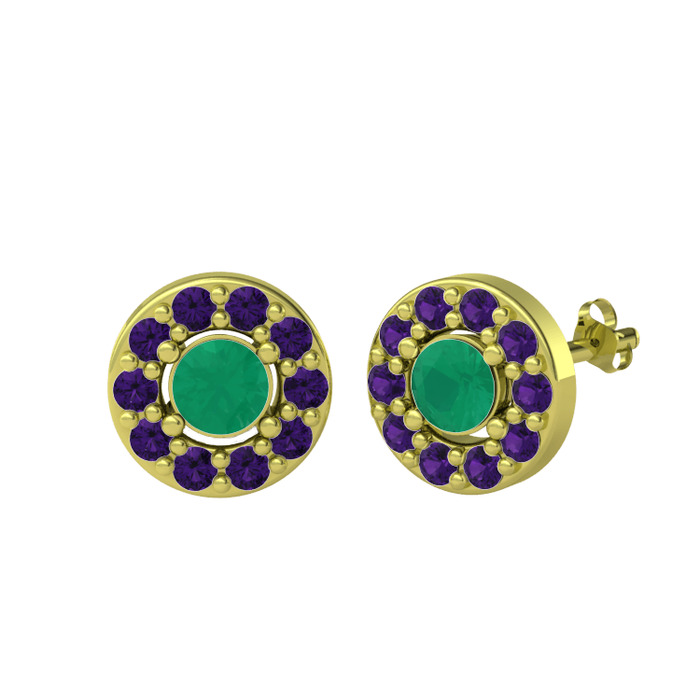 Kök zümrüt ve ametist 18 ayar altın küpe